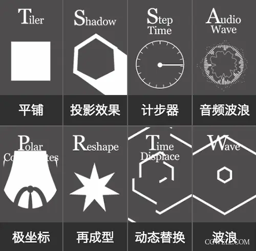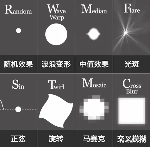 | 波形变形 | 产生波动状的模糊变形,有点像水流动态效果 |