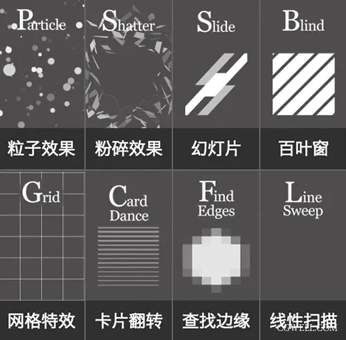| 线性擦除 | 按照指定方向横推擦除,可以配合蒙版做分屏 |